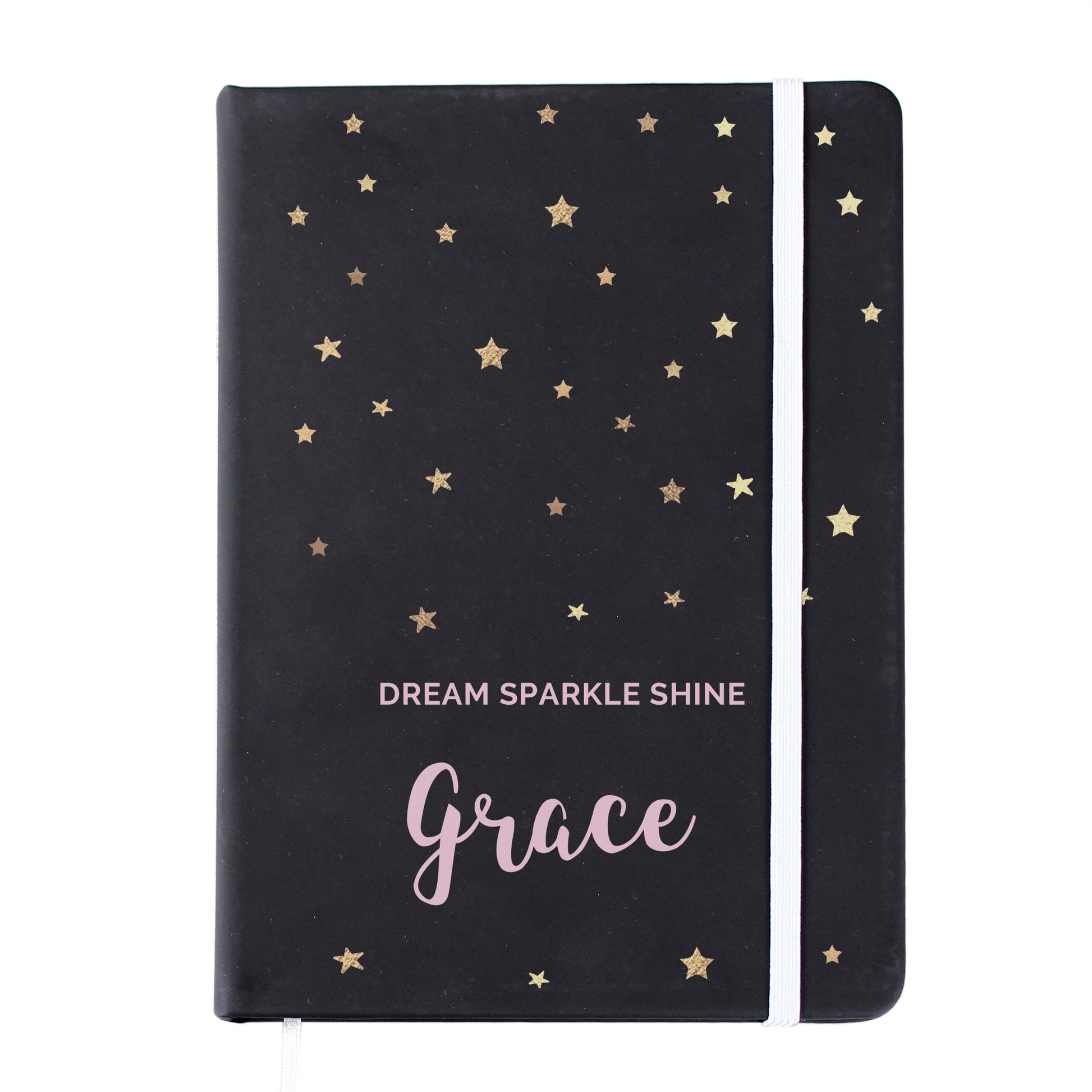 Our personalised black hardback notebook is perfect for all occasions including back to school or birthdays.
