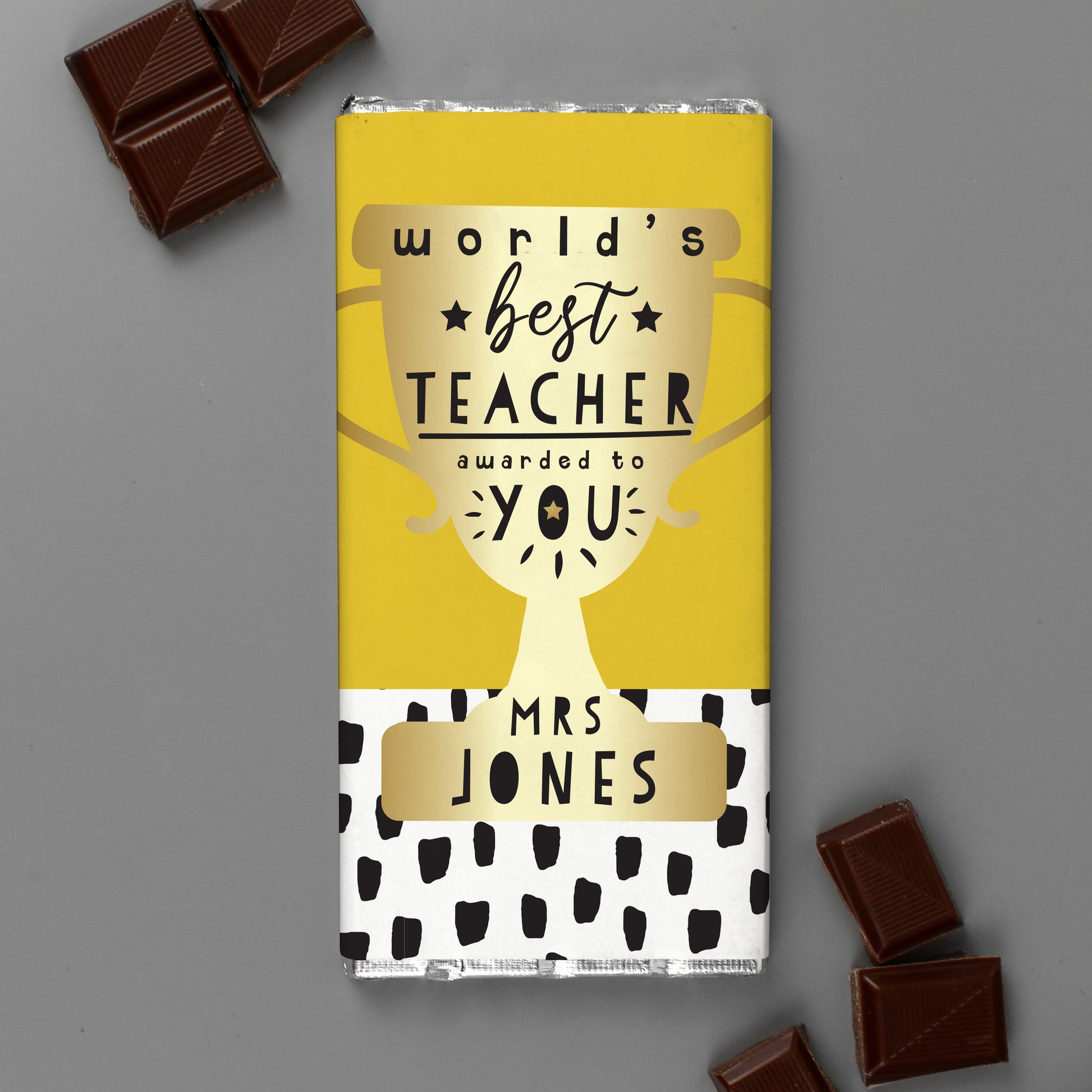 Worlds Best Teacher Trophy Milk Chocolate Bar